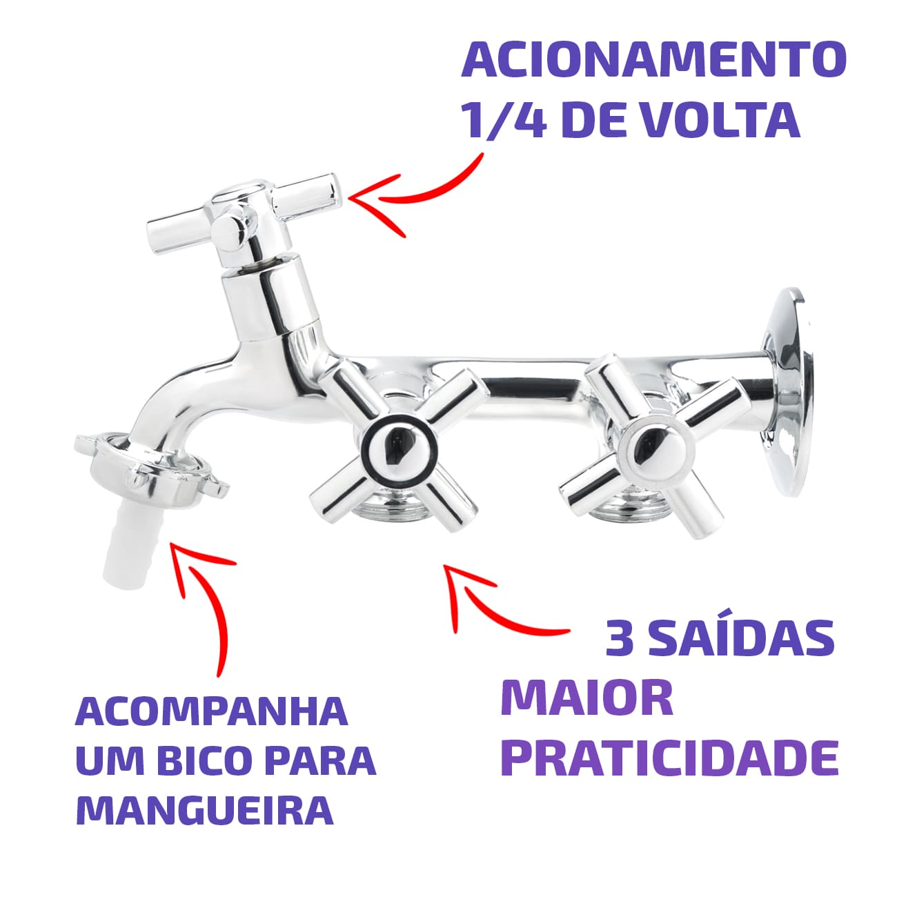 Torneira Metal C33 Estrela 3 Saídas Para Tanque e Máquina de Lavar