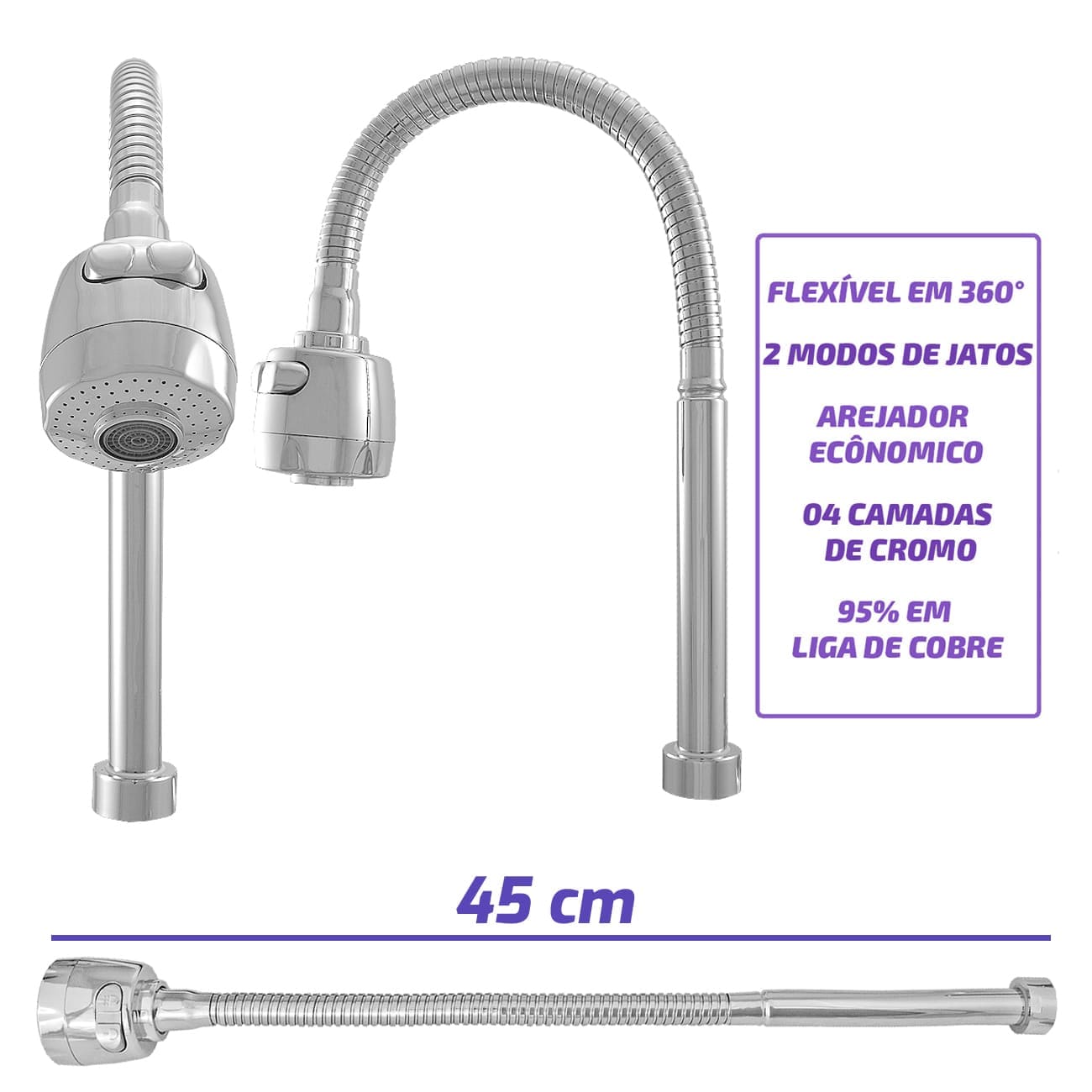 Com arejador incluso e 2 modos de jatos d’água;